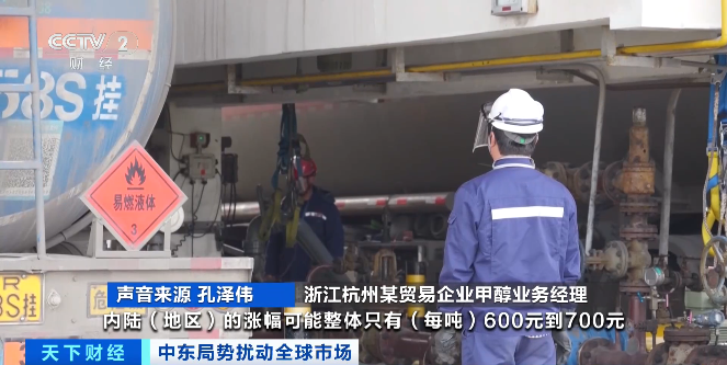 浙江杭州某贸易企业甲醇业务经理 孔泽伟:沿海市场的涨幅要比内陆市场大。内陆地区涨幅在(每吨)600元到700元。但是沿海地区整体(每吨)多上涨200元到300元。