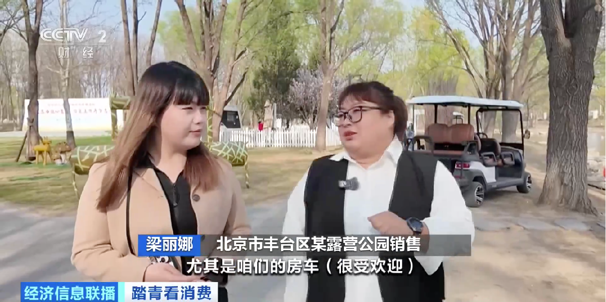 北京市丰台区某露营公园销售 梁丽娜:预订到6月底了,房车很受欢迎,可以免费钓鱼。