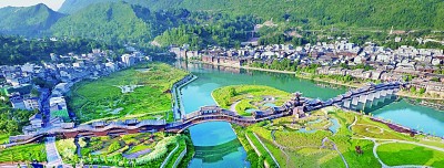 鸟瞰濯水古镇风雨廊桥
