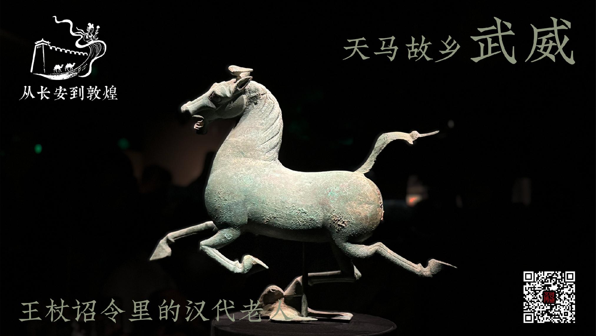 汉代自武帝时凿通西域,发兵夺取大宛名马,实现了“天马来兮从西极,经万里兮归有德”的盛况。此后西域名马源源不断地沿着河西走廊,经敦煌、武威一路到达长安。例如悬泉汉简II90DXT0115④:37记载,汉宣帝曾于元平元年(公元前74年)亲自下诏,“使户籍民迎天马敦煌郡”。魏晋南北朝时期,凉州以出产良马而闻名,史载前凉政权麾下的铁骑曾数次参与平叛,以至洛阳地区流传的童谣都有“凉州大马,横行天下”的赞誉。铜奔马的出土,更坐实了武威“天马故乡”的美名。