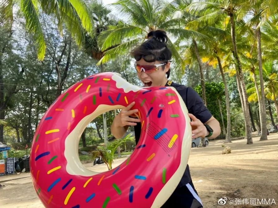 现在,她已经习惯了这种气候条件,甚至可以在训练之后,云淡风轻地晒一张满地汗水的照片。