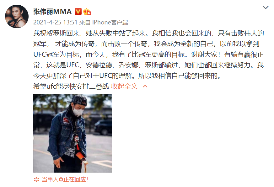 张伟丽失利后所发微博。