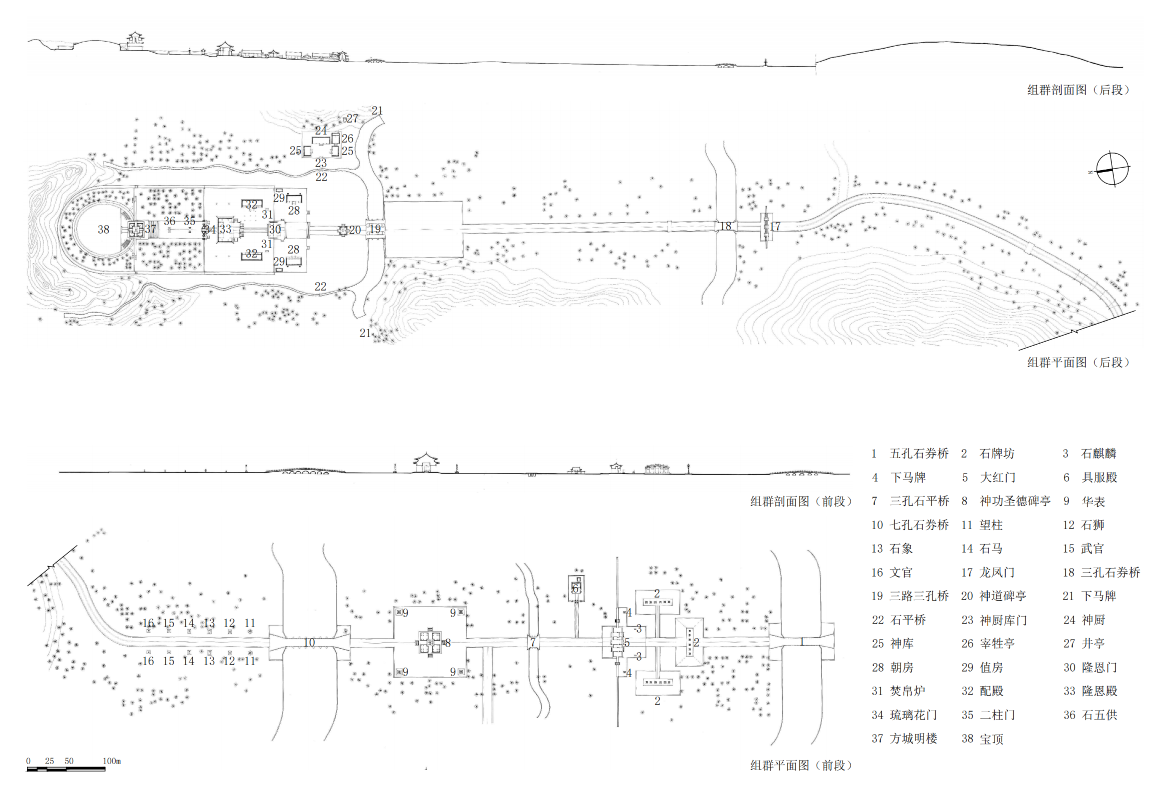 在清代陵寝项目中,对空间格局的思考是建筑设计师的基本功。为了追求风水上的“地臻全美”,慕陵甚至没有按照惯例采用正南正北方向,在接近东西向的山行水系适合陵寝的落位。