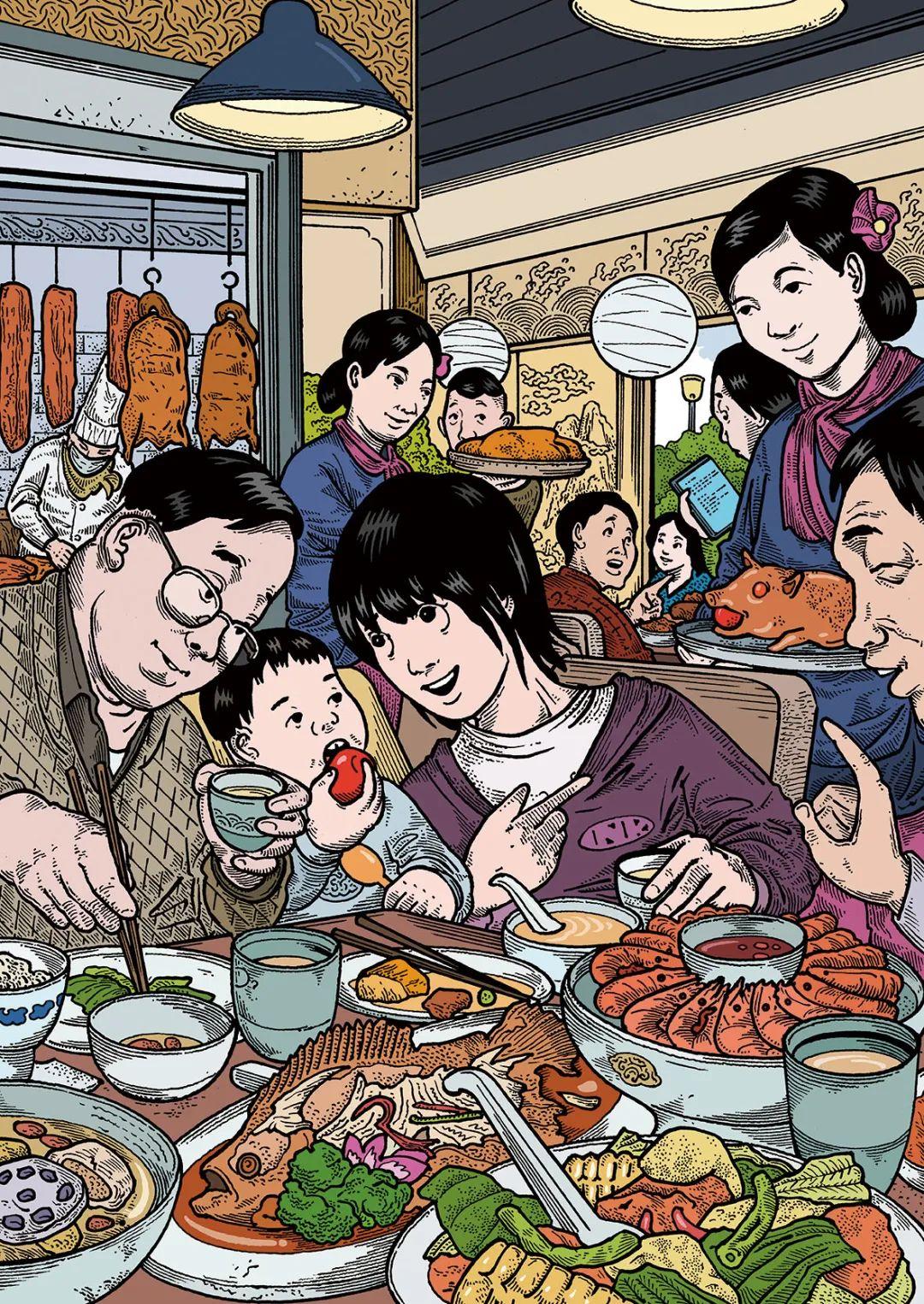 明亮的光线照在食物上,就连最普通的醋熘土豆丝都黄灿灿的,显得非富即贵。这就是为什么卖肉的摊位上总吊着一盏灯——让平平无奇的食物看起来新鲜又好吃。挑个靠窗的位子坐下吧,光线下的谎言一般是善意的。