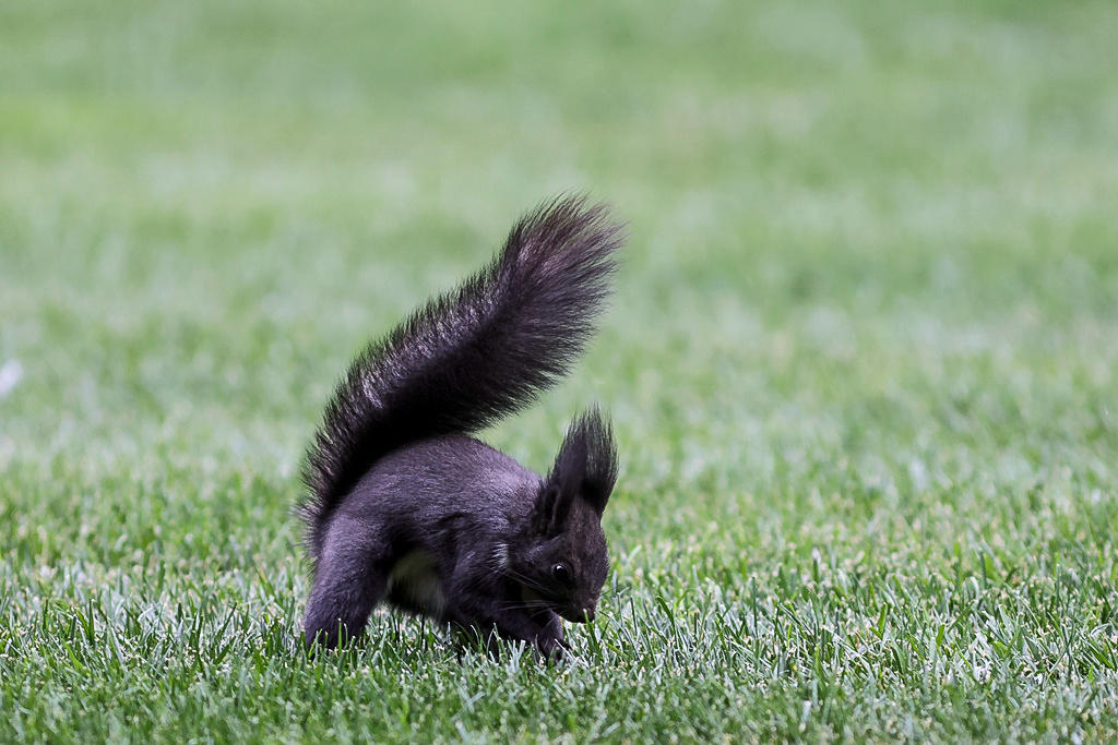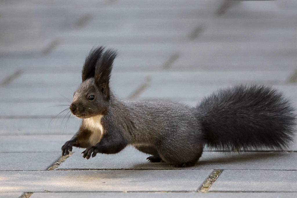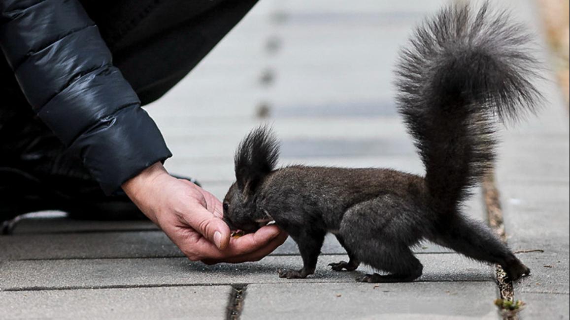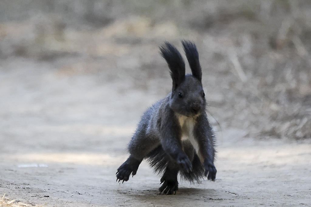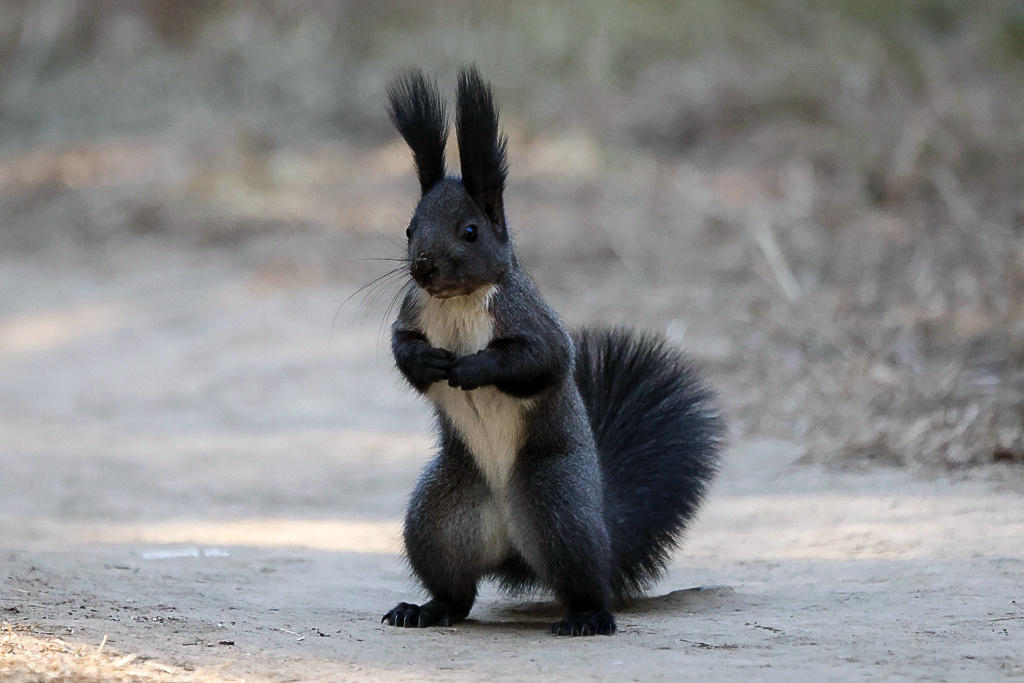 这些小精灵跟游客相处的分外和谐友好,一点也不怕人。它们生性好动,几乎一刻不停的四处跑动,偶尔也会停下来,两只后腿人立起来,前爪抱在胸前,向过往的行人作揖打拱讨要食物。每逢这个时候,小家伙滚圆乌黑的小眼睛总是波零波零的放着光。那条大尾巴还会在屁股后面摇来晃去,仿佛在向你撒娇似的。