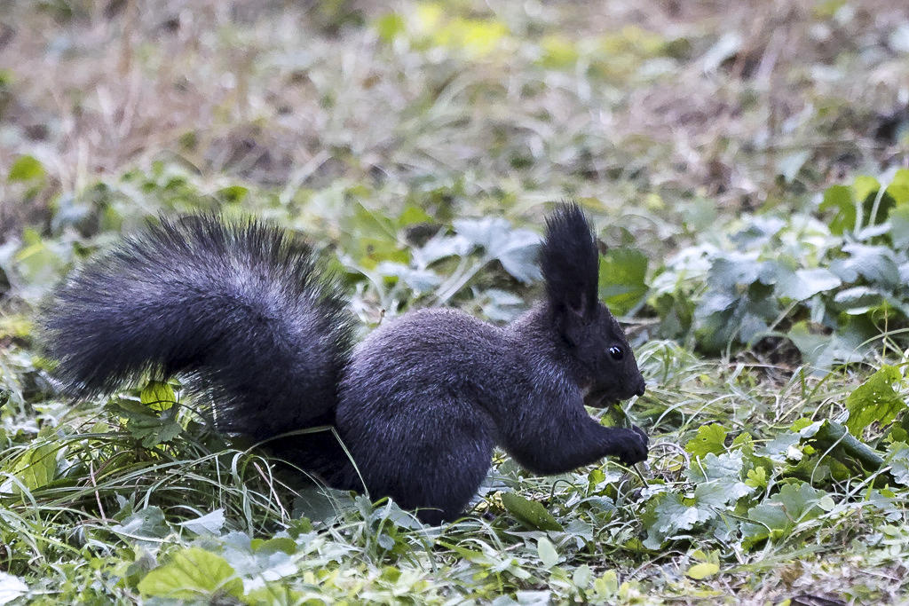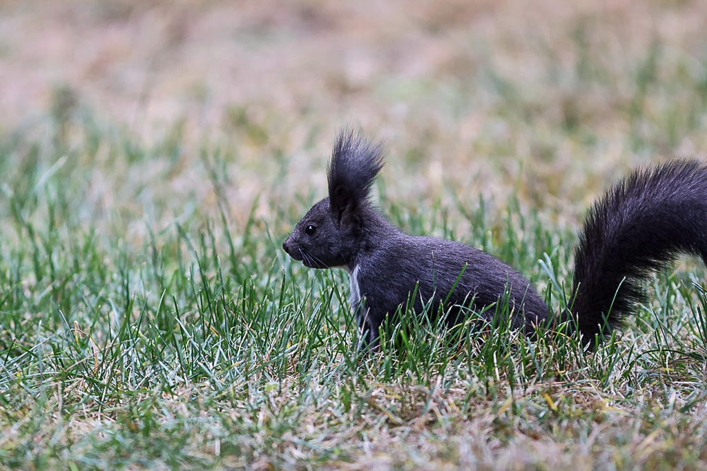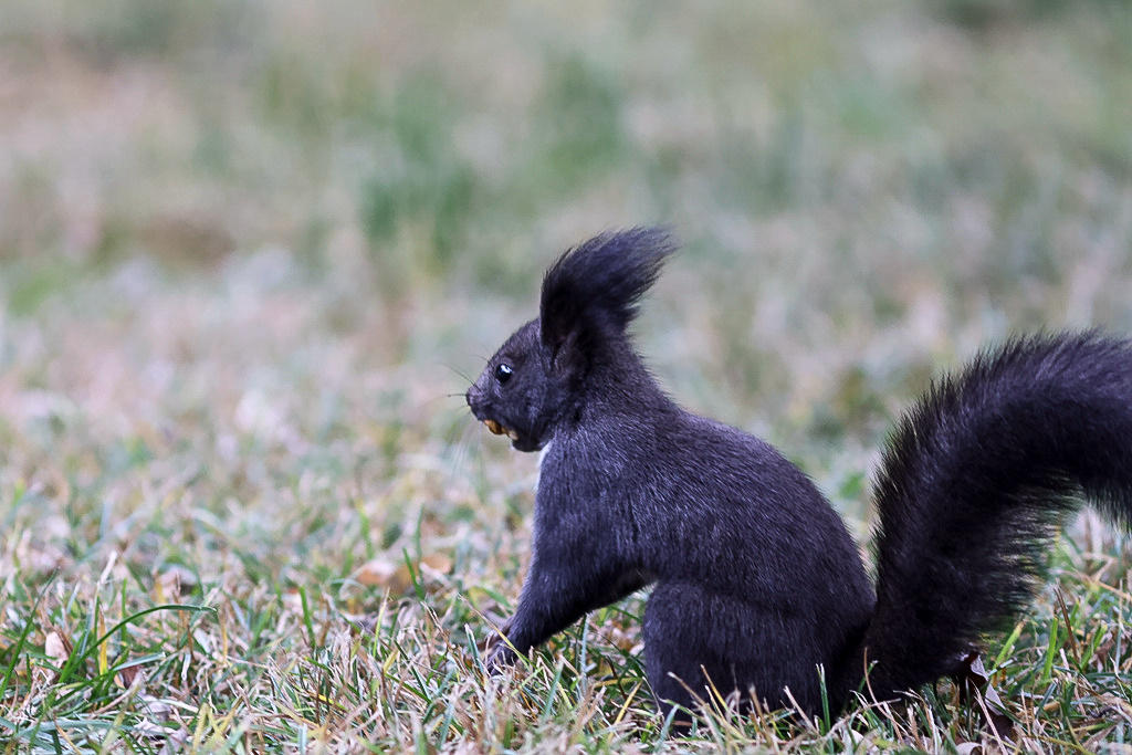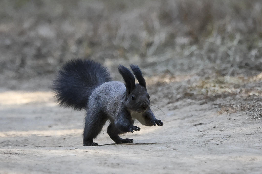 反倒是以前没见过的长着一身灰黄色毛,尾巴像根棍子似的岩松鼠和一身黑毛,白肚皮,有着一条毛绒绒大尾巴的白腹松鼠随处可见。据说北京以前并没有这两种松鼠,是一些善男信女买来在公园里放生,才有了它们。