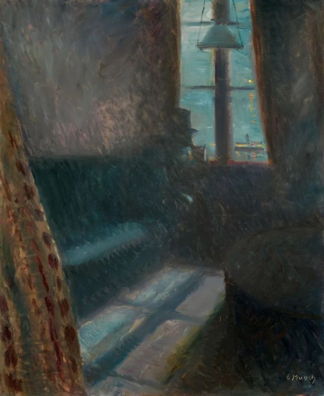 1889 年末,蒙克得知父亲去世的消息。他将自己画在一间幽暗的房间中,独自感受哀伤,他靠近窗边,望向远处的圆月,写道:去感受,去痛苦,去爱恋,我将画一批这样的图画,人们将会懂得自己的神圣,好似他们摘下了礼帽迈进教堂。
