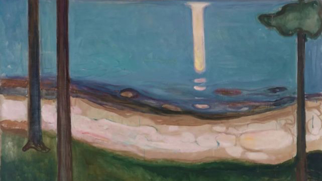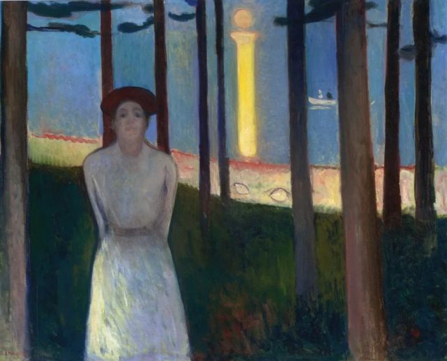 《夏夜之梦》中的月亮,被安置在显著位置,实际上,月亮也的确在蒙克的艺术与生活中,扮演着重要角色。
