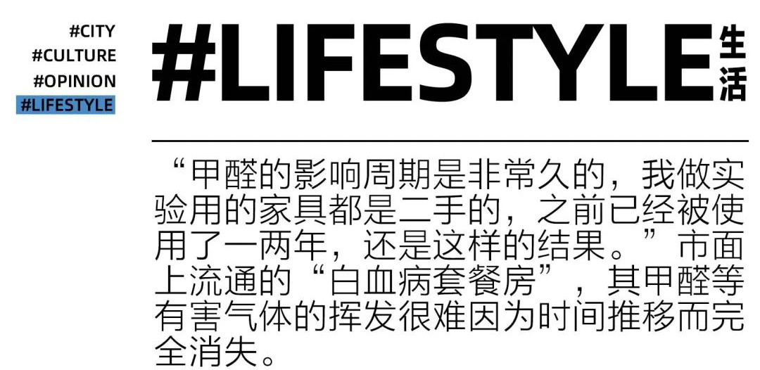 这些年里,陈生力接触过很多劣质材料和有害气体,他曾在公司里设置了一处实验室,其中一个实验是模拟一间用劣质材料装修的30多平方米的房子,检测它在不做干扰的情况下,多久能达到安全居住的标准。他连续追踪了4年,这些家具依然在释放有害气体。“甲醛的影响周期是非常久的,我做实验用的家具都是二手的,之前已经被使用了一两年,还是这样的结果。”所以市面上流通的“白血病套餐房”,其恶劣影响很难因为时间推移而完全消失。