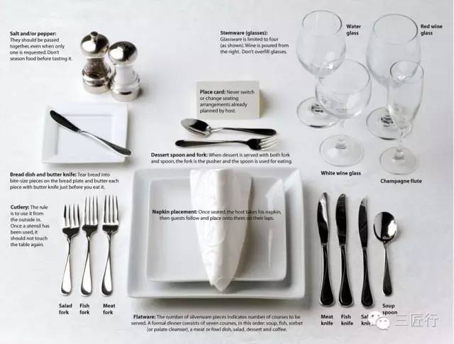 看了这么多关于西餐礼仪的要求,也许你会有疑问:为什么大家对吃西餐的礼仪这么重视,却对中餐桌上的传统习俗不重视?其实在三匠厨房(公众号ID:sanjiangfood)看来,中餐礼仪的复杂程度丝毫不逊于西餐。它比西餐礼仪更难琢磨,前人总结的条条框框之外,最难的是察言观色,揣摩人性。以后,三匠厨房会专门讲讲中餐礼仪。
