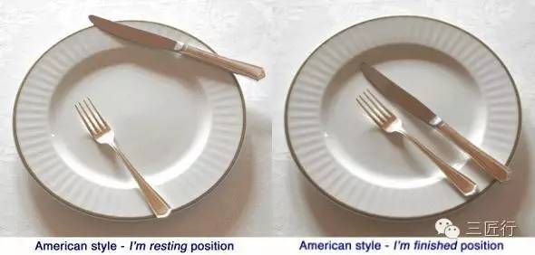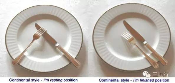 进餐中需要暂时放下刀叉时,或者用餐结束时,刀叉的摆法也有欧式和美式两种。