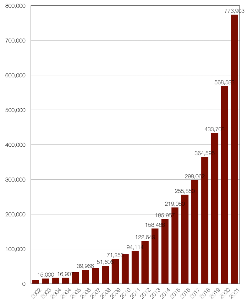 2021 年,我国城镇焚烧和填埋了约 3.2 亿吨生活垃圾,是日本的 6 倍多。按照城镇人口计算,人均垃圾的产生量是每天0. 94 千克,基本上达到了日本 2013 年的水平。