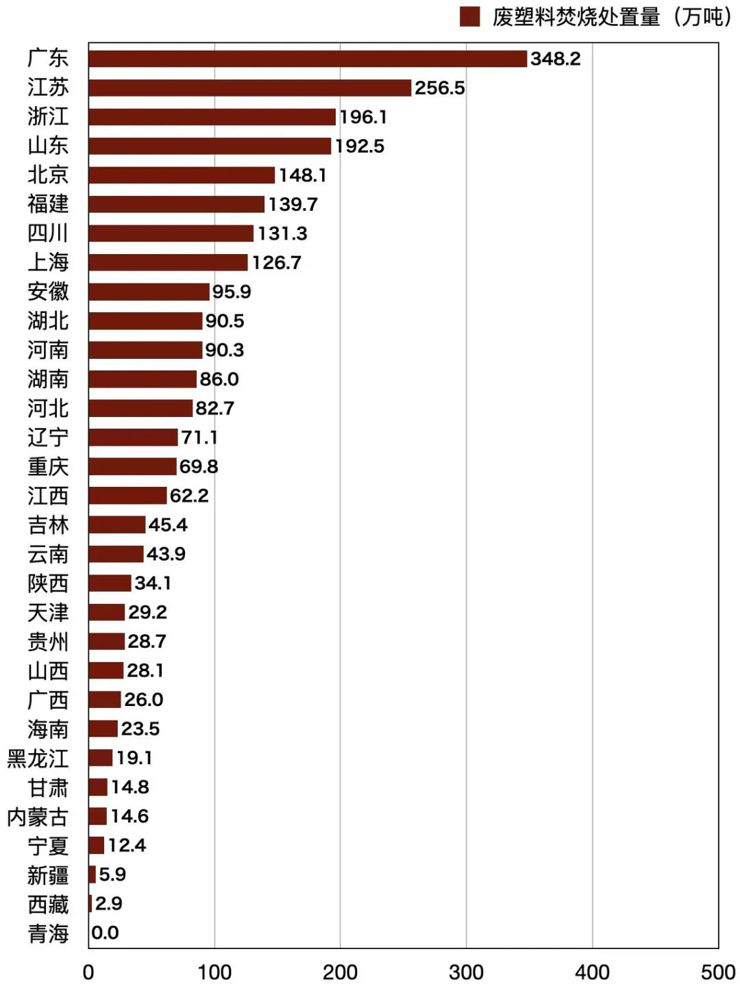 ●2020年各省区废塑料焚烧处置量。