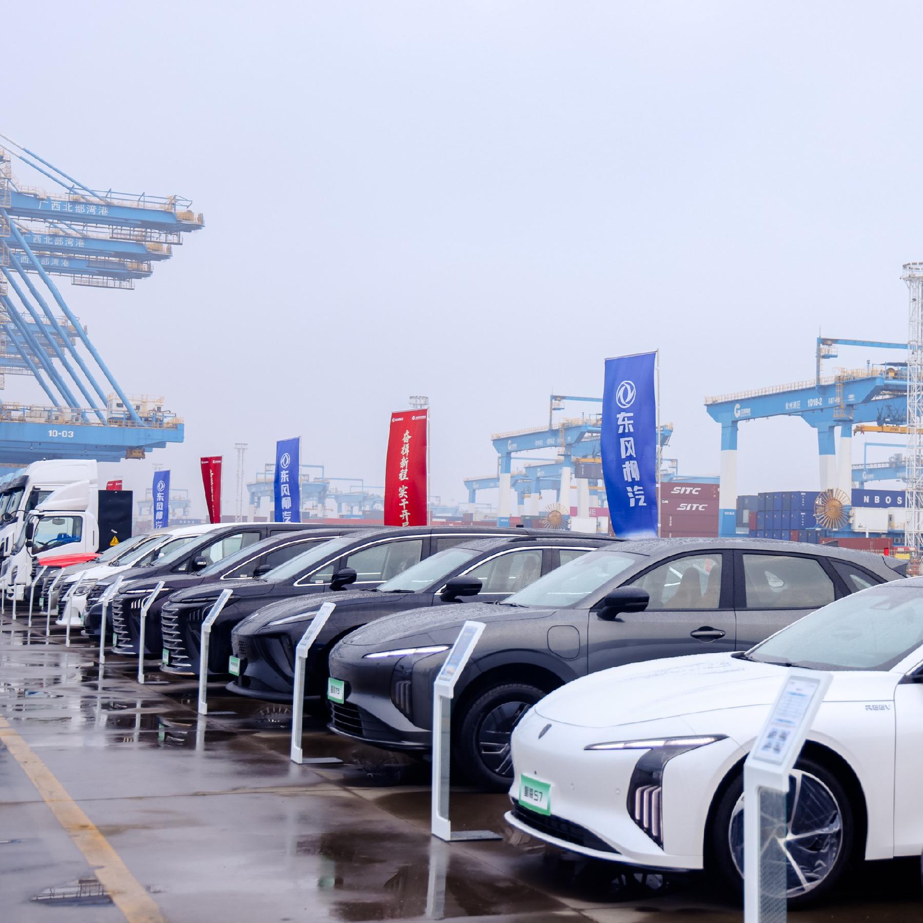 在开工指令发布之后,智能卡车随即启动装载集装箱,与自动化港口装备协同完成吊装上船作业,车与船鸣笛呼应,直观展现了“汽车智造+港口物流”融合的新质生产力。活动当天下午,船舶搭载着一批T5 EVO KD散件集装箱从钦州港离泊驶向柬埔寨。同时,在3月5日也将有47辆东风柳汽乘用车(星海S7、星海V9、M4),从北部湾港出发,直达阿联酋杰贝阿里港。