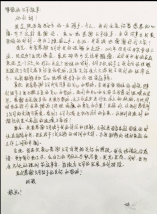 ▲陈金收到关怀金后给平台发来感谢信(图源:美团)
