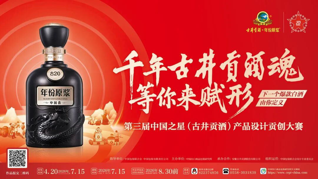 4月20日,由中国包装联合会、中国包装有限责任公司指导,中国出口商品包装研究所主办,安徽古井贡酒股份有限公司承办的2026第三届“中国之星 古井贡酒产品设计贡创大赛”在古井集团总部正式开启。