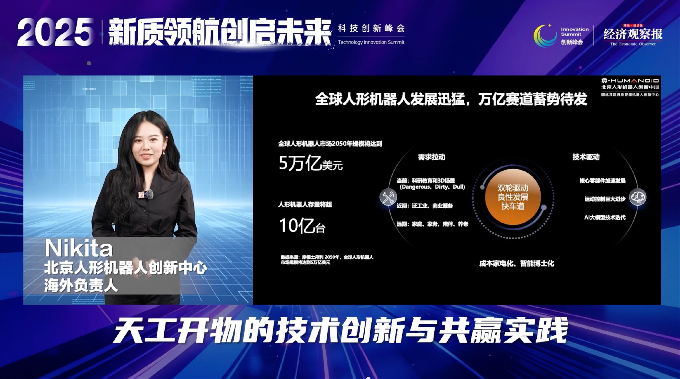 北京人形机器人创新中心海外市场负责人 Nikita 分享了人形机器人在技术创新与产业合作方面的进展,其产品已在工业生产、物流运输、养老服务等场景初步应用,通过产业链协同推动行业规模化发展。