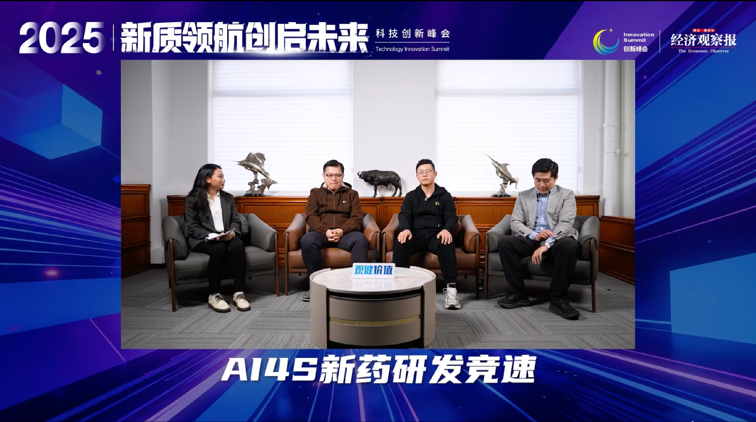 在 “AI4S 新药研发竞速:赛点和新里程” 行业对话环节,主持人《经济观察报》大健康新闻部资深记者张铃与北京智源人工智能研究院副院长叶启威、哲源科技联合创始人赵宇、高榕资本董事总经理乐贝林围绕 AI 在药物研发中的价值展开深度探讨。