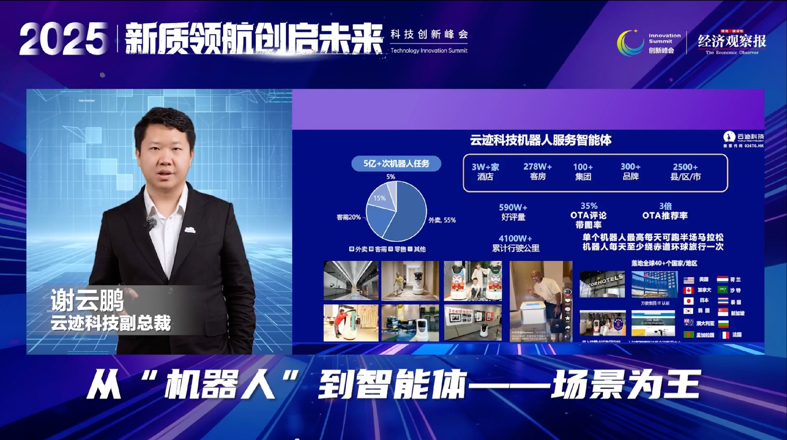 云迹科技副总裁谢云鹏提出 “从机器人到智能体” 的发展理念,介绍了云迹科技通过 11 台机器人与 AI 智能体协同,打造三甲医院智慧服务新范式,实现患者引导、物资配送等全流程智能化。
