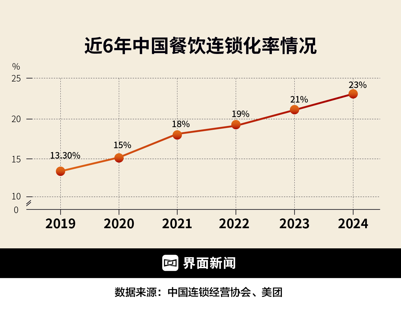 近6年中国餐饮连锁化率情况 图表制作:界面新闻 何苗