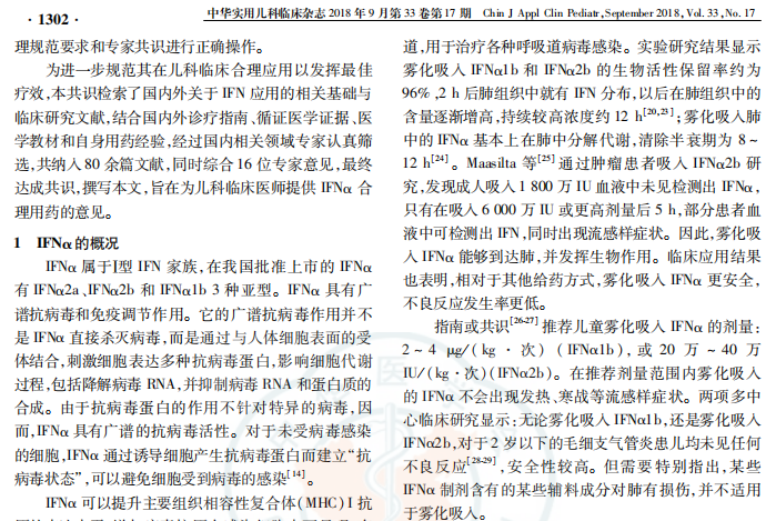 [5] 申昆玲, 尚云晓, 张国成, 等.α干扰素在儿科临床合理应用专家共识 [J] . 中华实用儿科临床杂志, 2018, 33(17) : 1301-1308.