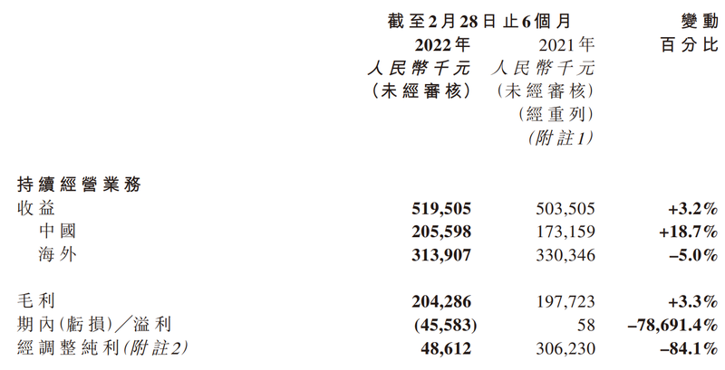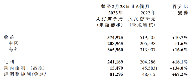 十一假期结束后,其截至2023年2月28日止6个月的中期业绩公告也同步刊发。