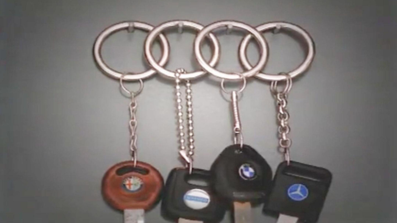 广告中奥迪将四种车的钥匙放一起组成了奥迪的logo,这四款车分别是阿尔法·罗密欧、奔驰、沃尔沃、宝马。意思就是说:我一辆奥迪顶你们四个!