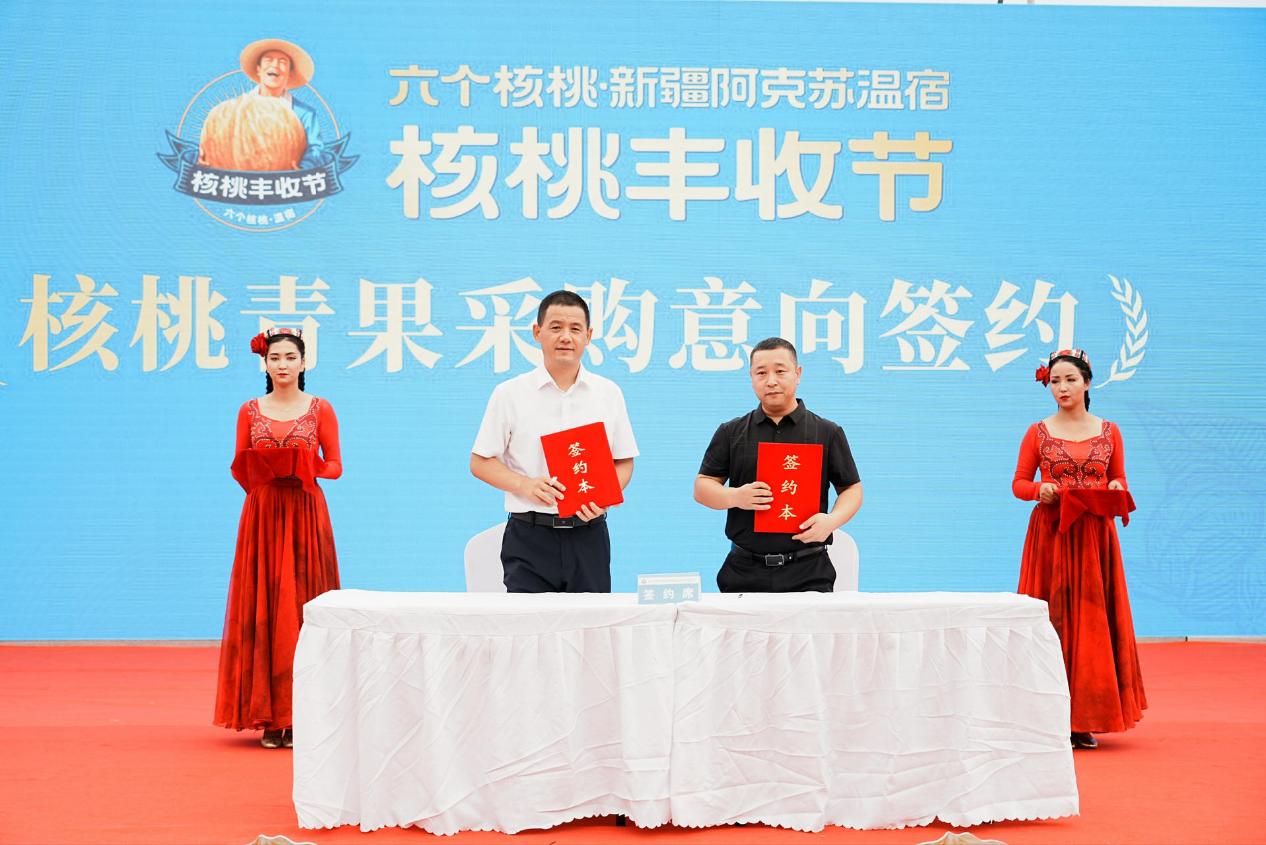 走进“中国核桃之乡”新疆温宿,漫山遍野的核桃树果实累累,一颗颗圆润饱满的核桃果压弯了枝头,迎着喜悦的秋风,核桃农户们脸上洋溢着丰收的笑容。8月23日,六个核桃联合温宿县政府举办的“六个核桃·新疆阿克苏温宿核桃丰收节”隆重开幕,期间六个核桃就与温宿农发集团签署“乡村振兴助农合作战略协议”,还与新疆誉通农业签订“核桃青果采购协议”,并正式揭牌了六个核桃·三大核桃黄金产区(新疆)示范园”。