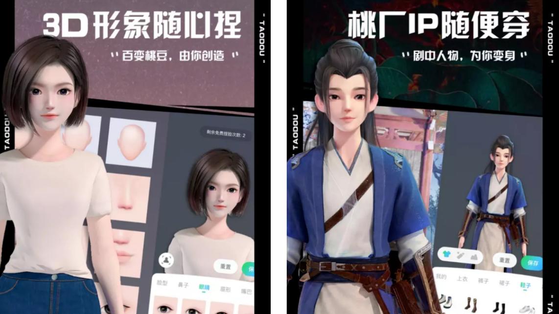 “元音大陆”中的桃豆世界是基于爱奇艺影视IP所衍生的3D虚拟互动空间,用户可以像QQ秀一样,创建3D虚拟形象,包括捏脸、整理发型等。