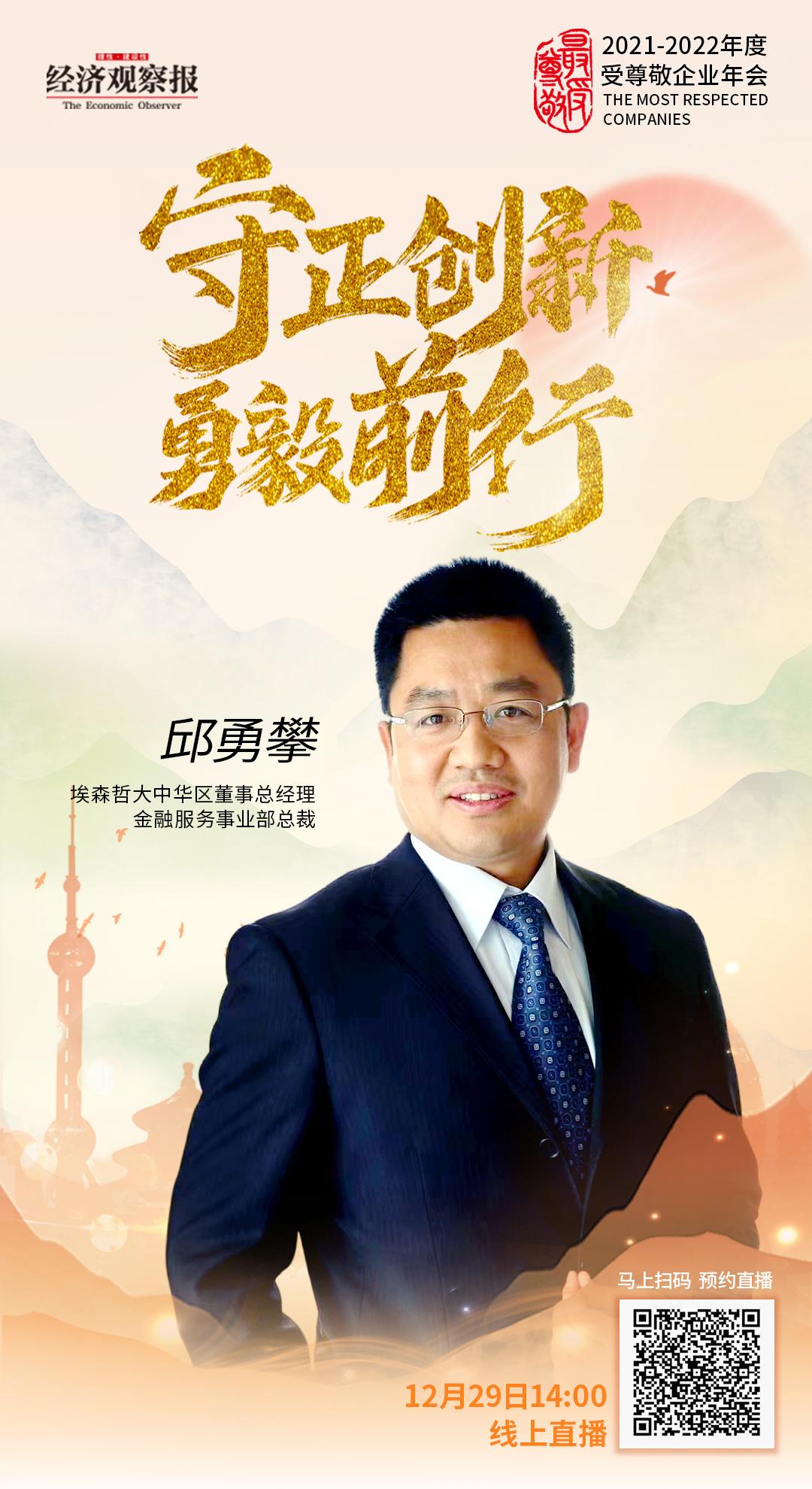 埃森哲大中华区董事总经理、金融服务事业部总裁邱勇攀先生确认出席活动现场。