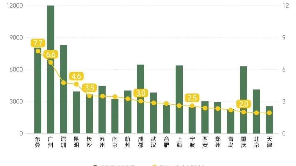 此外,广州、深圳、东莞、成都、上海、重庆6个城市的新茶饮门店在6000家以上,其中,广州新茶饮门店数超过12000家,是唯一“新茶饮万店城市”。