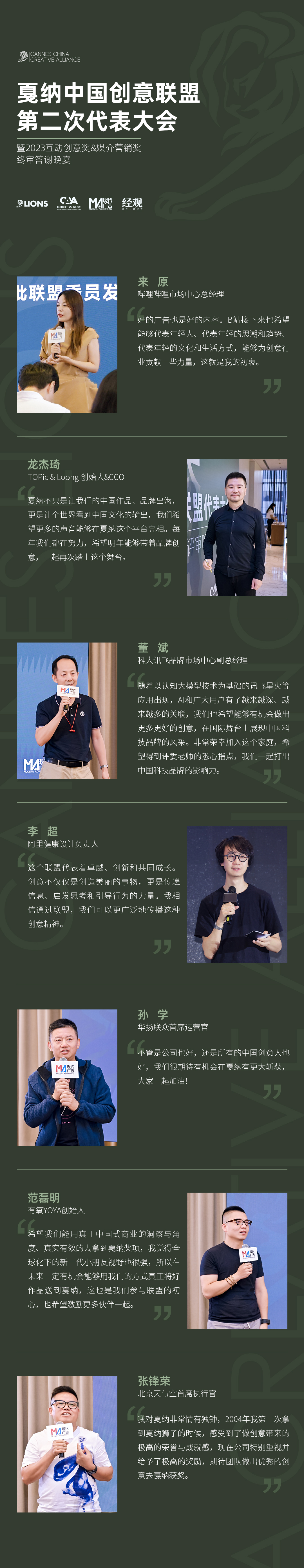 在戛纳中国创意联盟第二次代表大会上,欣喜地迎来了第二批联盟委员。随着国内多家品牌、互联网公司、媒体平台、广告公司高层的加入,创意联盟队伍再次壮大。让我们一同回顾当天委员们的金句时刻。