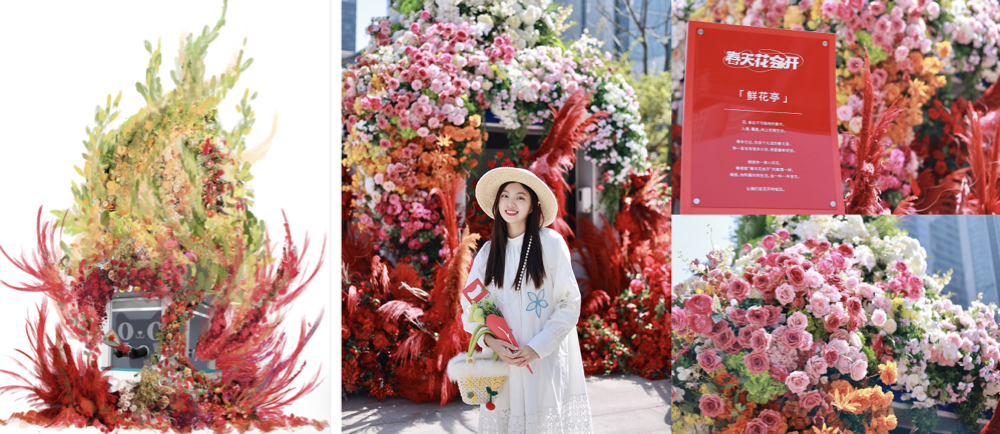 据了解,搭建「鲜花亭」所使用的花材是回收于《春天花会开》品牌片拍摄时的置景花材,从片中的梦幻的鲜花置景到现实街道上的鲜花亭,在这场春日营销中,品牌的心意也跟着鲜花亭一起落地。
