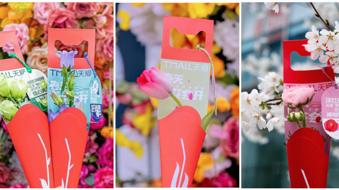 近期,春日的氛围愈来愈浓,在杭州政府的支持下,天猫爆改「核酸亭」变身「鲜花亭」,为人们派发春天。