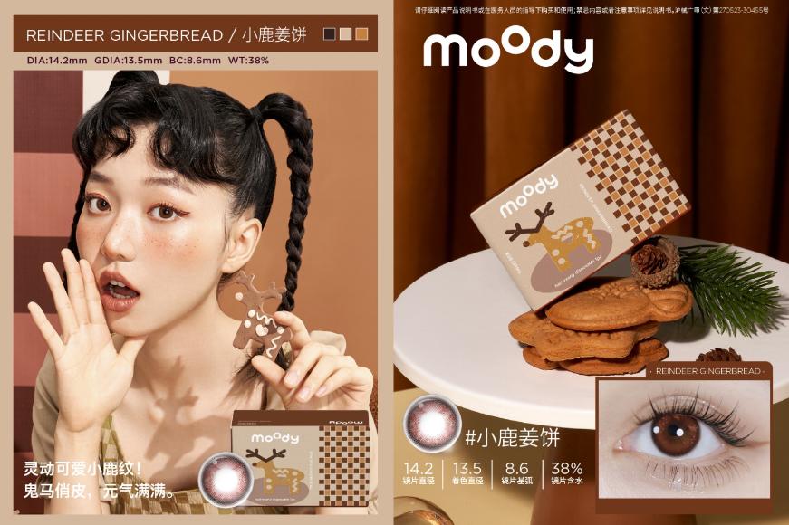 圣诞即将到来之际,美瞳品牌 moody 以甜点为灵感,推出圣诞「甜心系列」半年抛,包括「小鹿姜饼」、「抹茶巴斯克」两款圣诞氛围新色,为消费者打造「治愈系冬日眸」。据悉,全新「甜心系列」将于双十二正式上线。