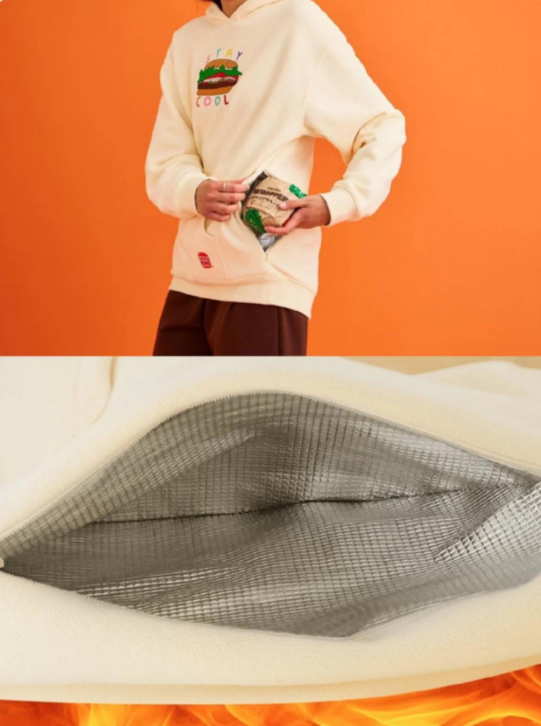 Burger King汉堡王与纽约服装品牌STAY COOL合作推出这款带隔热口袋的保温卫衣,专为你刚买的皇堡保暖。