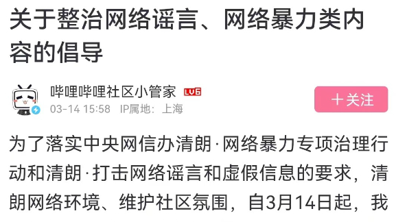 近日,B站发布《关于整治网络谣言、网络暴力类内容的倡导》,宣布将持续整治谣言、网暴类内容,打击“造谣传谣”、“网络爆破”等违规行为,维护社区氛围与网络环境。此外,针对组织、企业发布不友善信息的行为,也首次被B站纳入到治理范畴内。