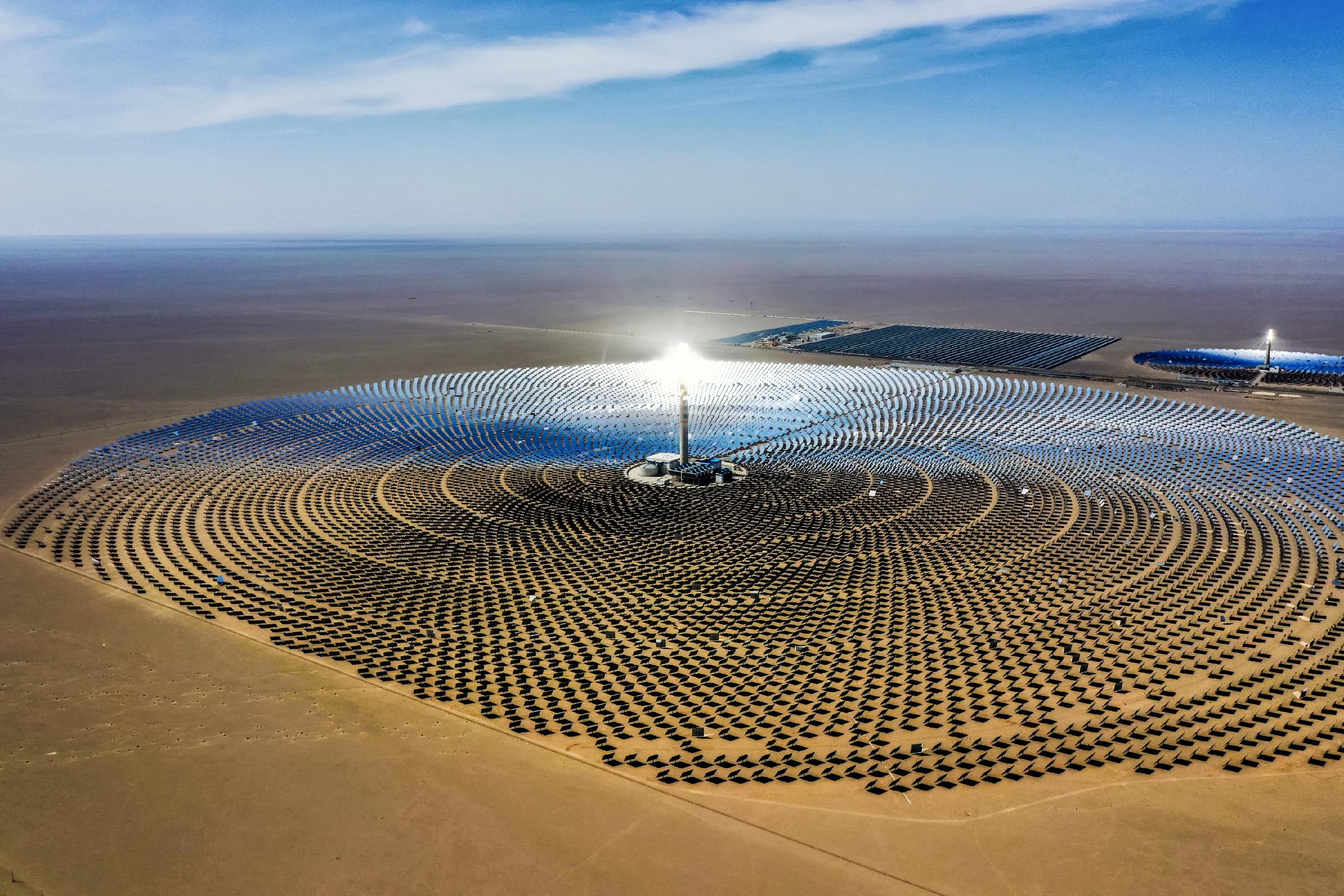“这是国家第二批‘沙戈荒’大型风电光伏基地重点项目——金塔中光太阳能‘10万千瓦光热+60万千瓦光伏’项目。”金塔中光太阳能发电有限公司副站长黄禄杉指着吸热塔介绍。