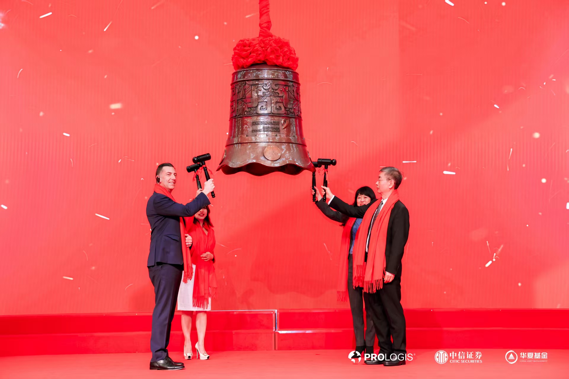 安博全球首席财务官Tim Arndt、安博中国董事长吴娟和中信证券股份有限公司(以下简称“中信证券”)党委副书记、监事会主席张长义出席了上市仪式并致辞,安博、中信证券、华夏基金等有关代表以及其他合作伙伴、投资人代表出席了上市仪式。