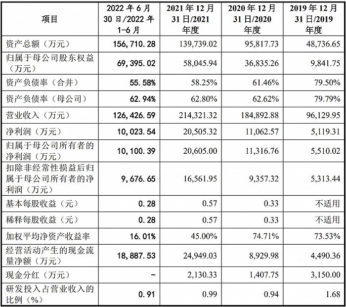 招股书显示,公司是一家专注于服务中小型连锁药店、单体药店及基层医疗卫生机构的医药流通企业。2019年、2020年、2021年、2022年1-6月,该公司实现营业收入分别是9.61亿元、18.49亿元、21.43亿元、12.64亿元,同期实现归属于母公司股东的净利润分别是5510.02元、1.13亿元、2.06亿元、1.01亿元。公司主营业务收入主要来源于中西成药,报告期内收入金额占主营业务收入的比分别为93.32%、73.12%、88.25%和88.35%。