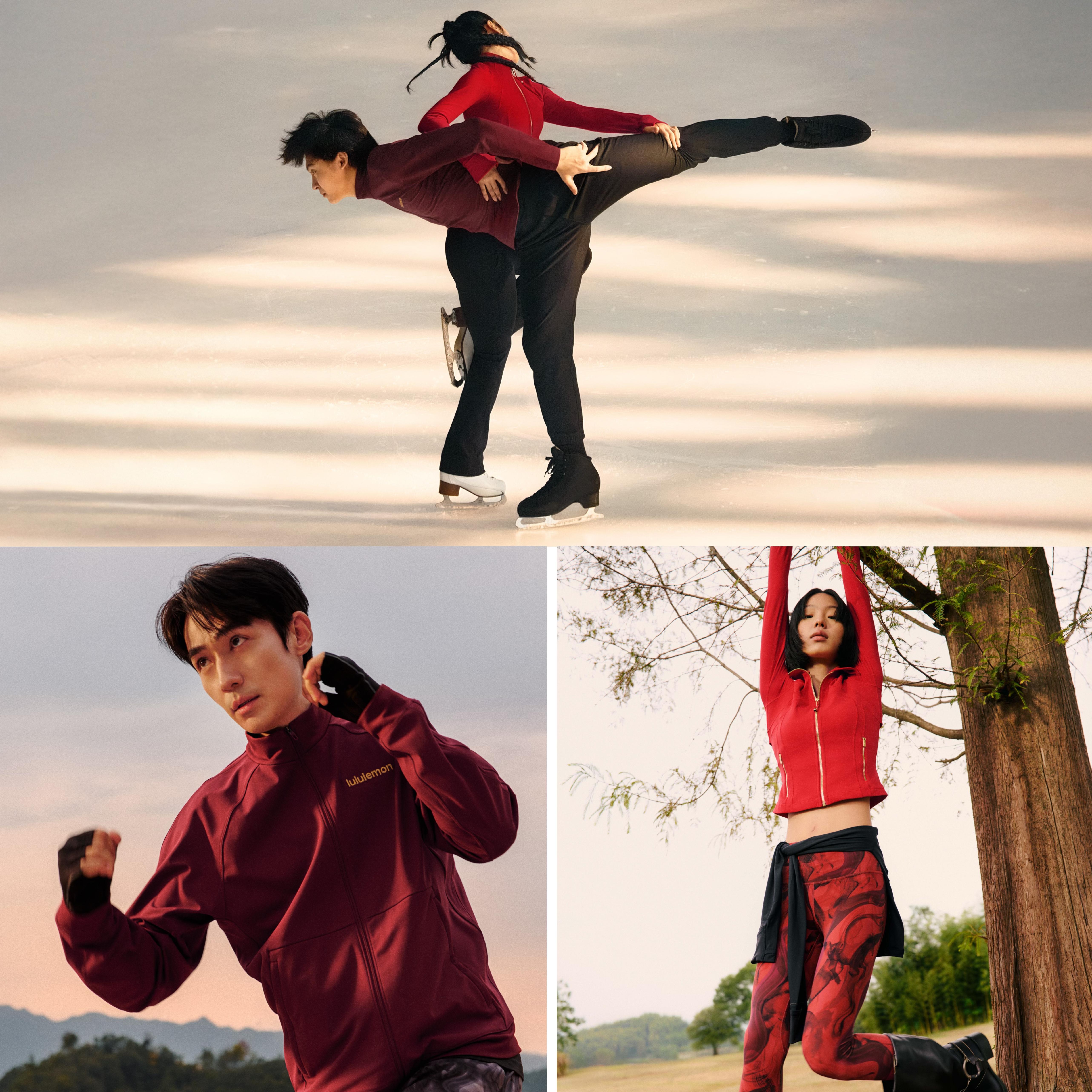 具体到lululemon的2026新春限定系列的产品,其设计延续了短片中的东方韵味表达,将勃艮第酒红、浅象牙白等色彩与写意水墨结合,形成马年生肖意向,配以金绣细节点缀,在经典爆款基础上实现节庆表达。