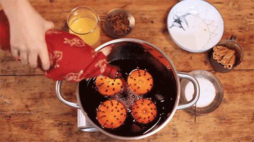 葡萄酒里的酒精在加热后部分挥发,留下水果和香料馥郁的香气,这杯酒要和亲密的朋友共享,不管是在热闹的圣诞集市还是燃着壁炉的客厅,热红酒的香气氤氲,就像一块圣诞色的毛毯盖在肩上,蒸腾起美好和惬意。