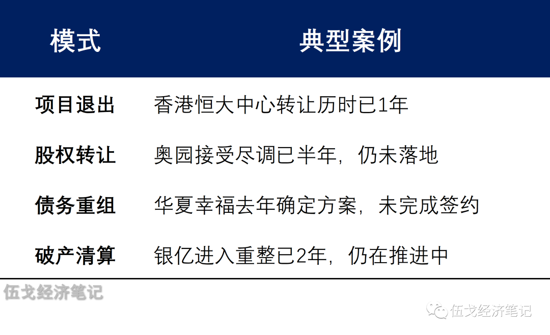 3. 一年多来,各方都在摸索地产危机的处置方式,但无论资产转让还是债务重组,这些“慢”变量似追不上行业整体恶化的“快”变量。房地产的复杂性、系统性注定了若无政府信用的果断介入,而仅靠市场力量难以扭转风险趋势。日、美的历史教训都深刻揭示这一点。