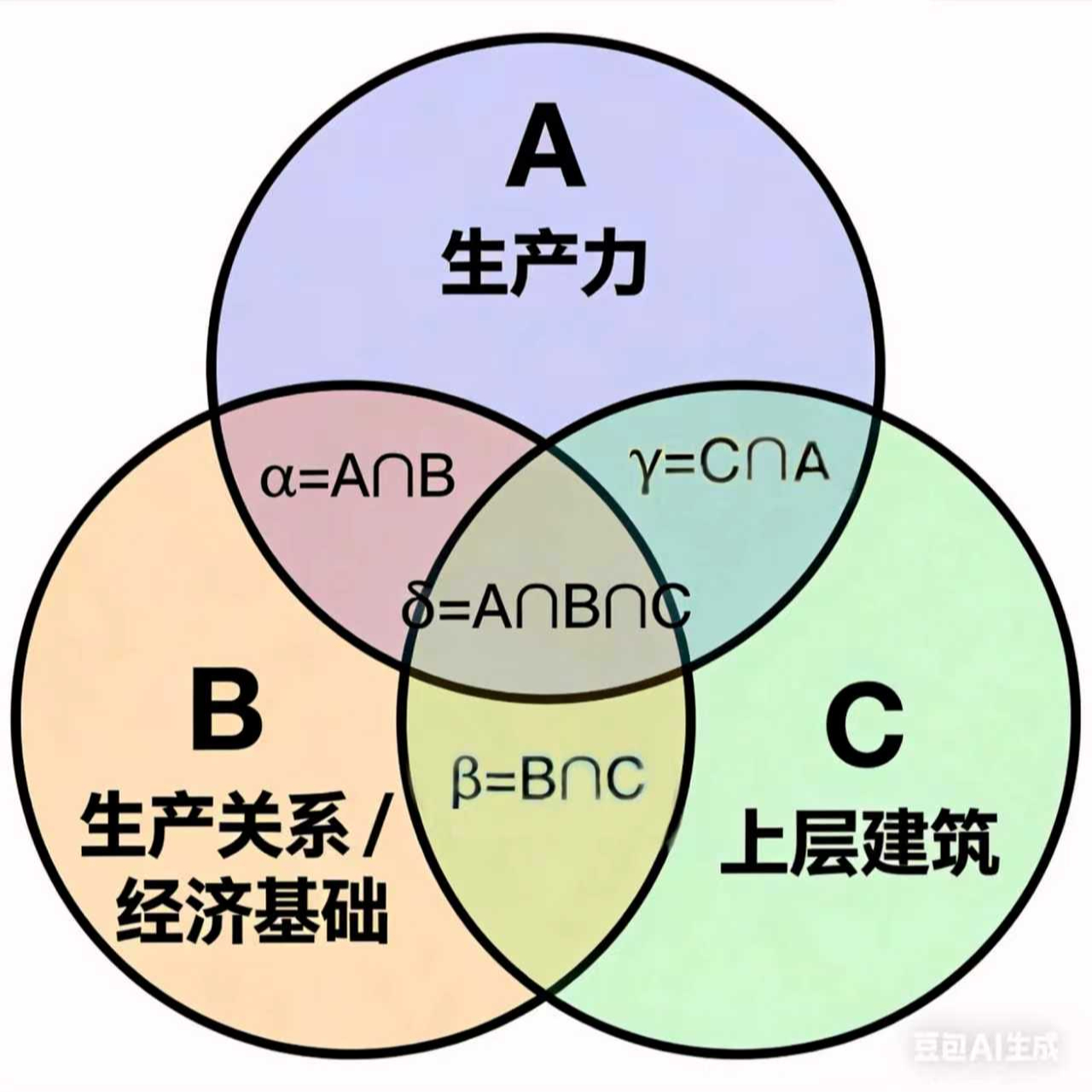 - 保持张力的综合性:它既坚持生产力(A)的终极基础地位(体现在α、γ、δ中都包含A),又充分赋予生产关系(B)和上层建筑(C)以能动的、甚至在某些历史关头是决定性的作用(体现在β、γ、δ的独立意义)。这种设计避免了经济决定论与文化决定论的各执一词,在综合中保持了理论的必要张力与解释弹性。