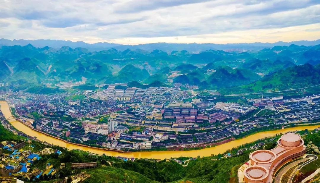 茅台镇平均海拔400米,沿着赤水河而建,周围崇山峻岭环绕,犹如一个酒甑(zeng),茅台酒厂就在这个酒甑的最底部,是酿酒的最佳位置。