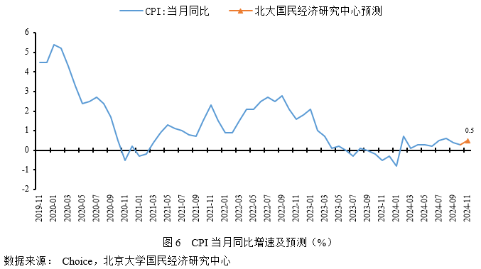 预计2024年11月CPI同比增长0.5%,较上期上涨0.2个百分点。