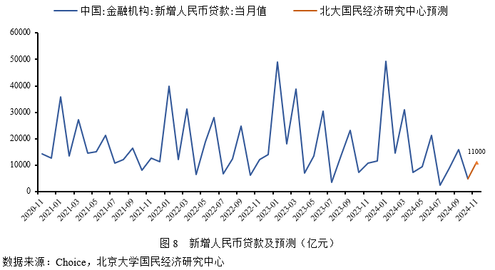 综合而言,在新一轮稳增长政策发力下,尤其是当前大规模的扩张性金融政策和房地产松绑政策落地,楼市成交已经显著回暖,信贷规模将有所支撑,预计2024年11月新增人民币贷款11000亿元,同比多增100亿元。