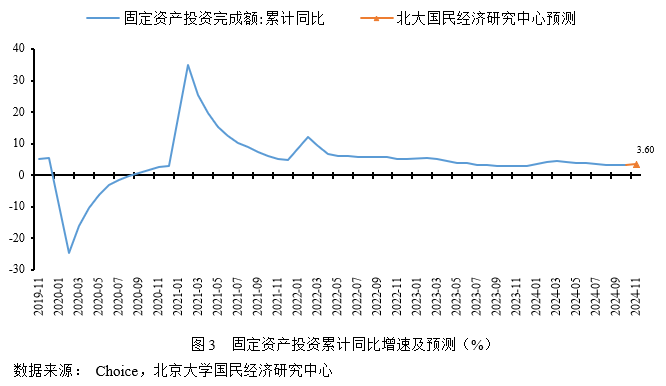 预计2024年1-11月份固定资产投资同比增长3.6%,较1-10月份上涨0.2个百分点。