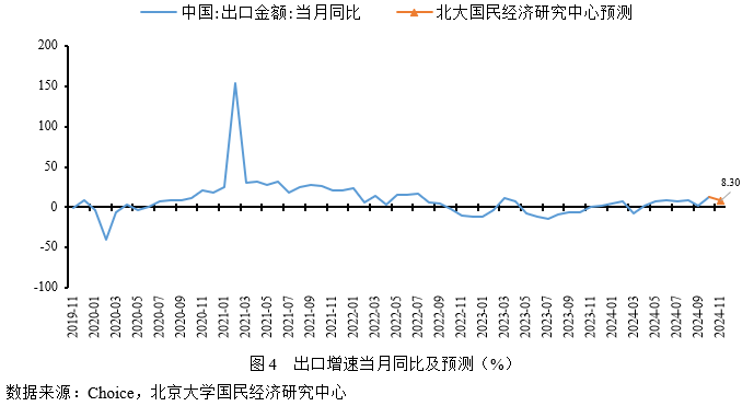 预计2024年11月份出口金额同比增长8.3%,较10月下降4.4个百分点。