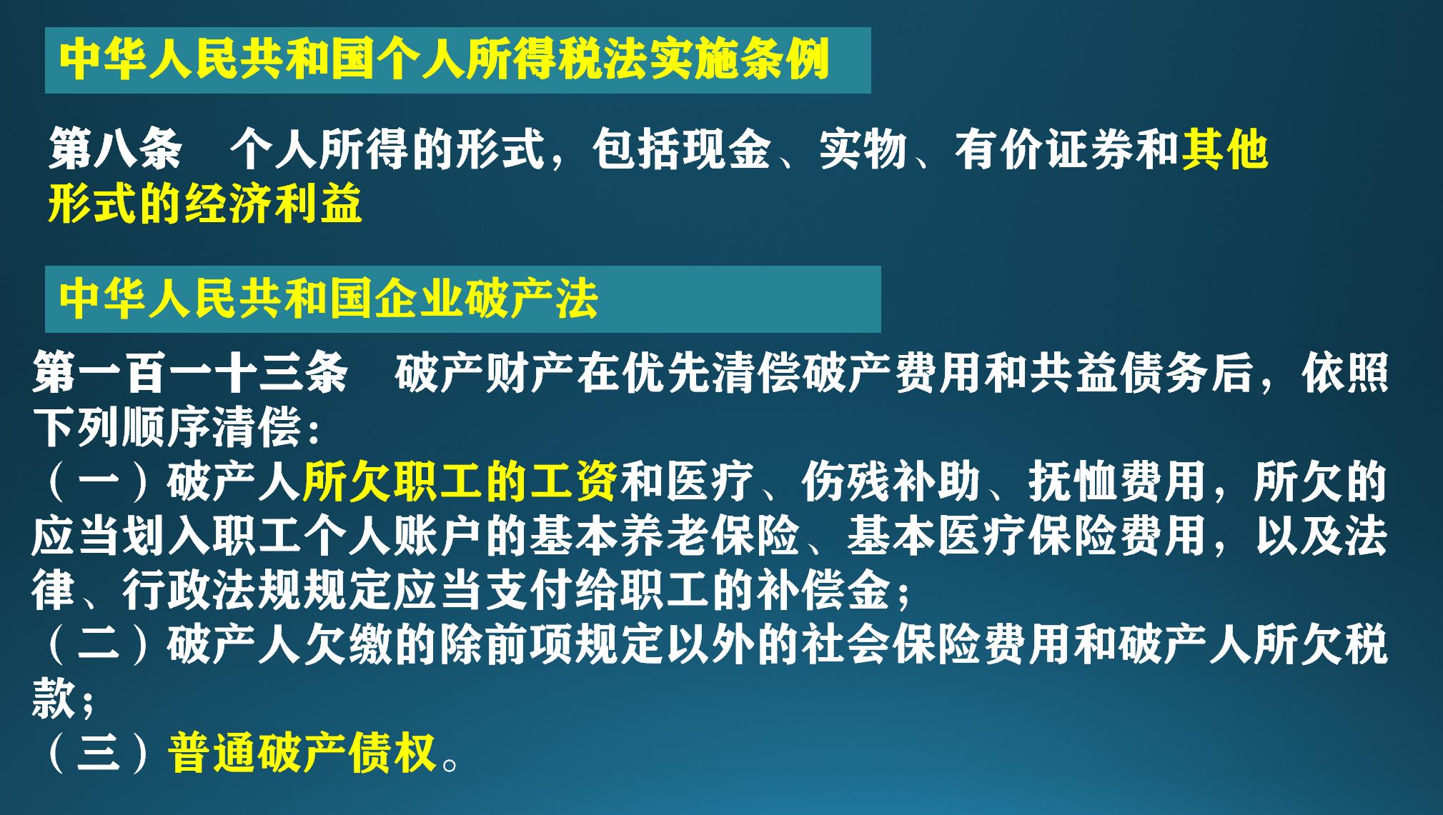 不过如果企业连社保都让员工自己代垫的情况下,个税应该也得员工自己先垫上。虽然说个税3年内可以申请退回,但是个税和为了员工未来保障支出的社保不同,如果不是非常特殊的情况,例如老板给自己发的工资,我倒是不建议员工个人同意企业这时候就代扣个税。毕竟如果要代扣个税,严格来说应以发借条的形式发工资,这种情况下员工不能获得现金的风险又大了很多,因为企业如果破产,工资的偿付顺序是优于债权的。即使税局认可不需要发借条,个税仍可以交,建议员工也要获得这是“在工资未发的情况下预缴的个税”的书面证明,避免个税缴纳被当成工资已发的证据,未来追讨工资时不确定性加大。只是没发借条的工资费用在当年企业所得税前一般就没法扣除了,要等到未来实发时再追溯调整。不过就像我一直说的,实际执行中经常有各种简化的操作,还是和税局做好沟通,确认当地执行口径。